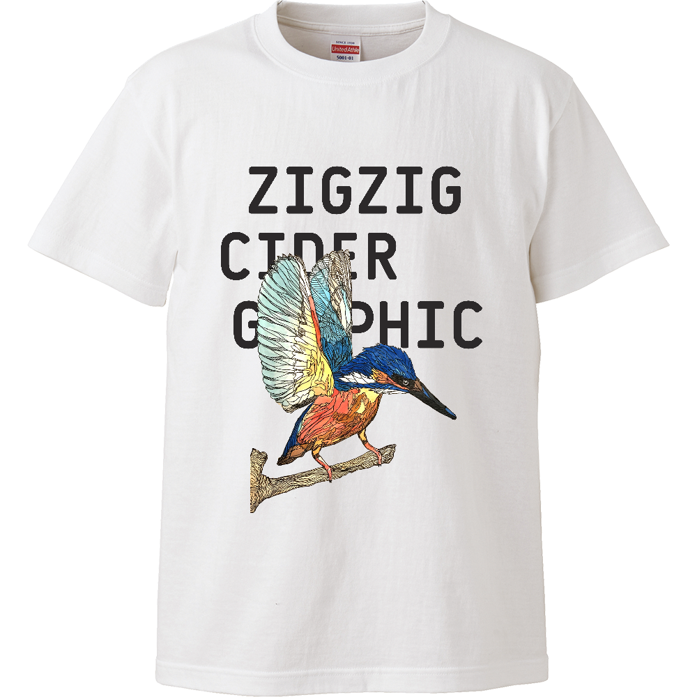 今にも飛び立ちそうなカワセミさんのTシャツです。