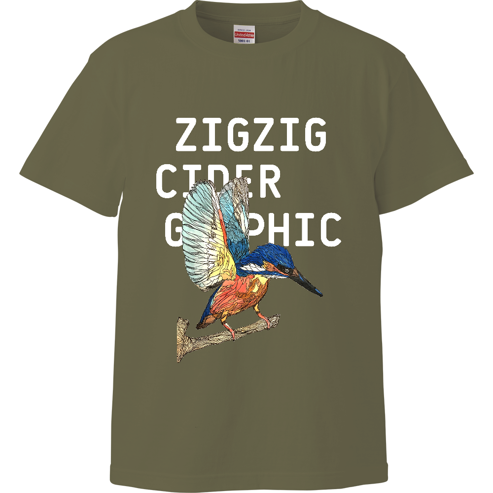 今にも飛び立ちそうなカワセミさんのTシャツです。