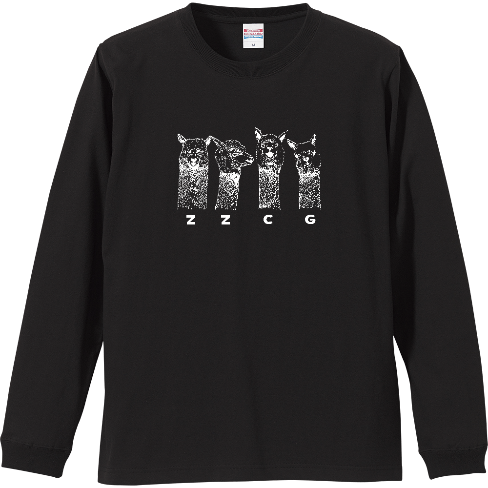 アルパカが4人揃ったイラストをプリントしたロンTです。