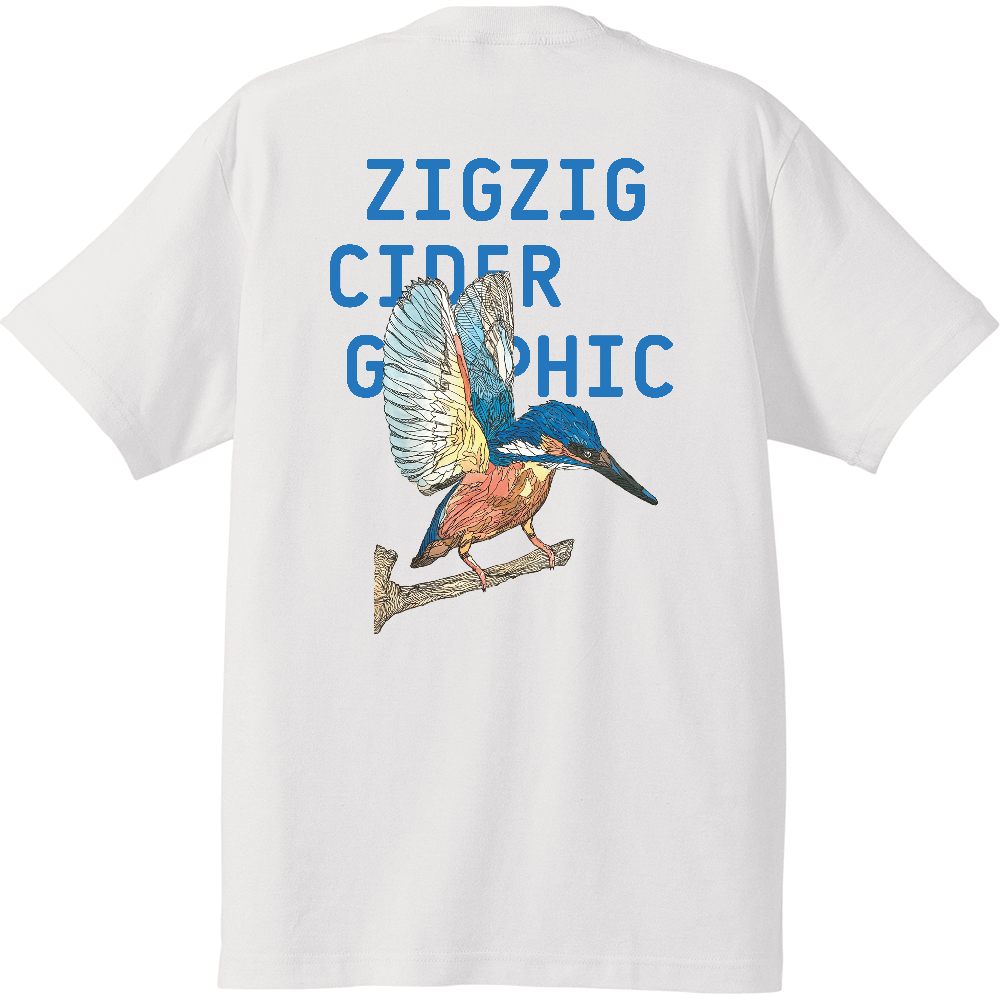 今にも飛び立ちそうなカワセミさんのTシャツです。