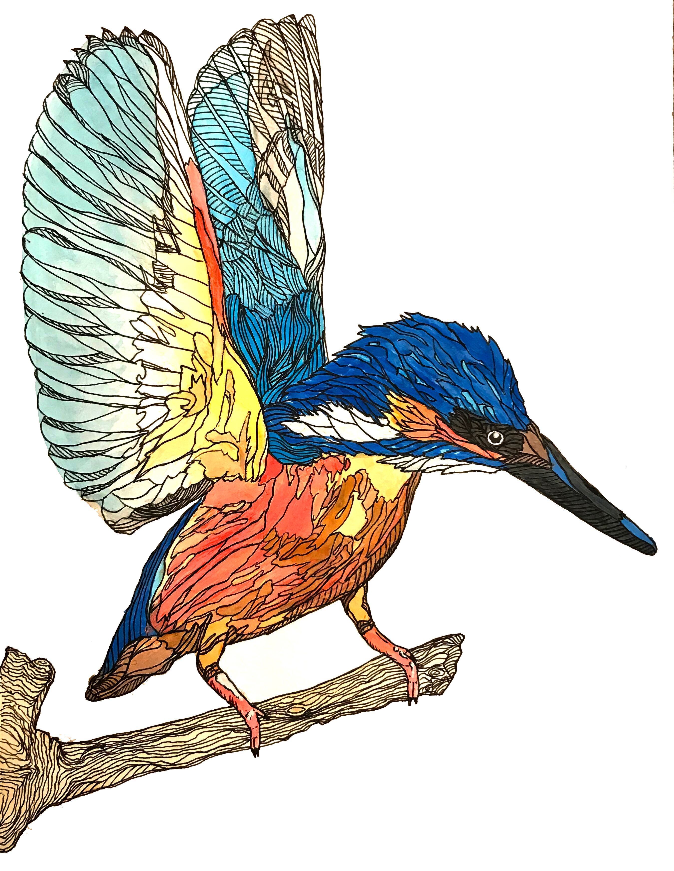 今にも飛び立ちそうなカワセミさん ロンT(ブラック)です。
