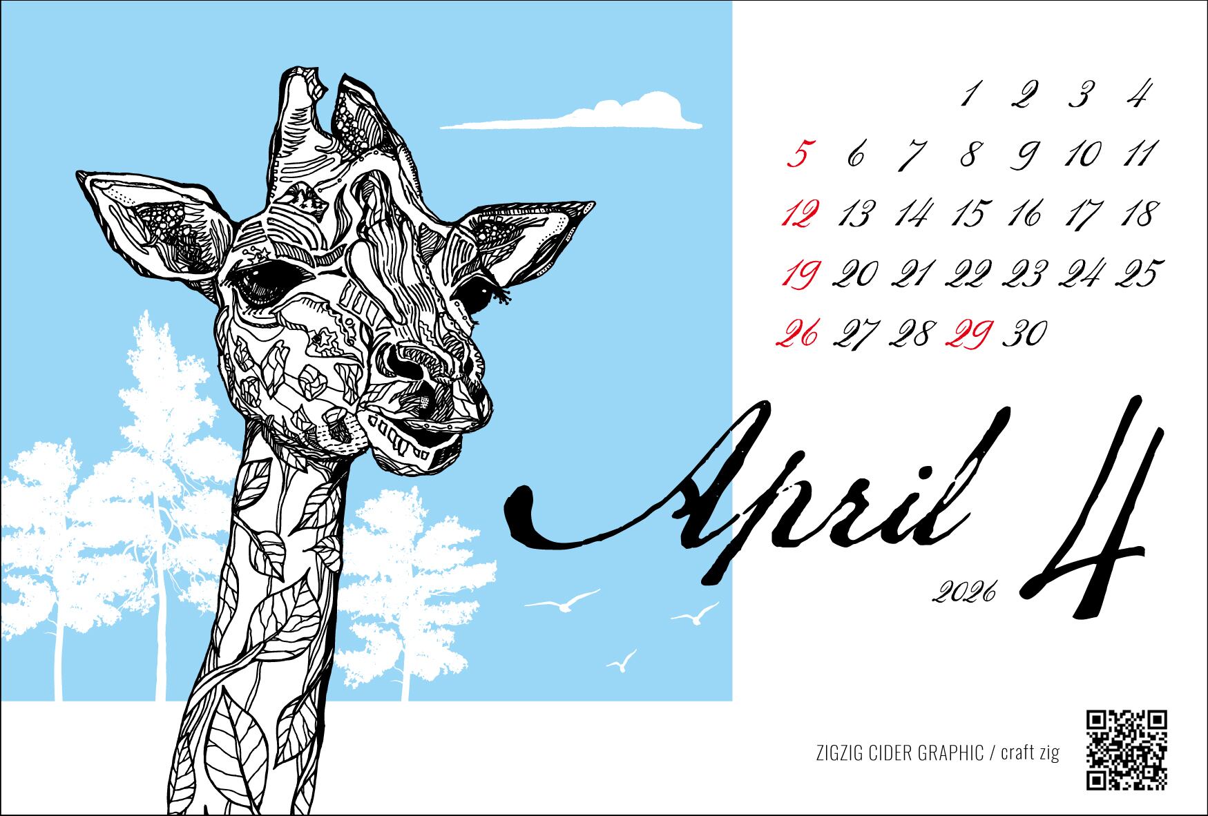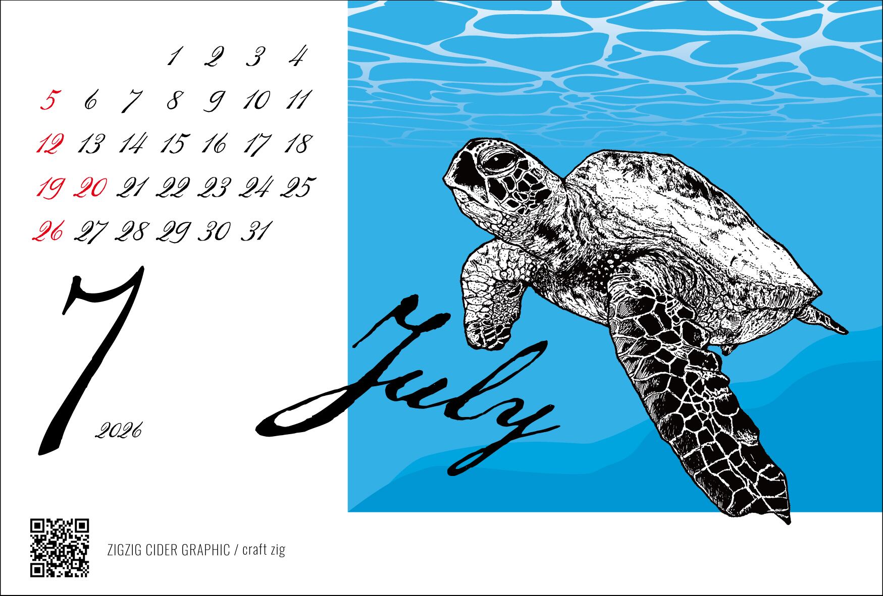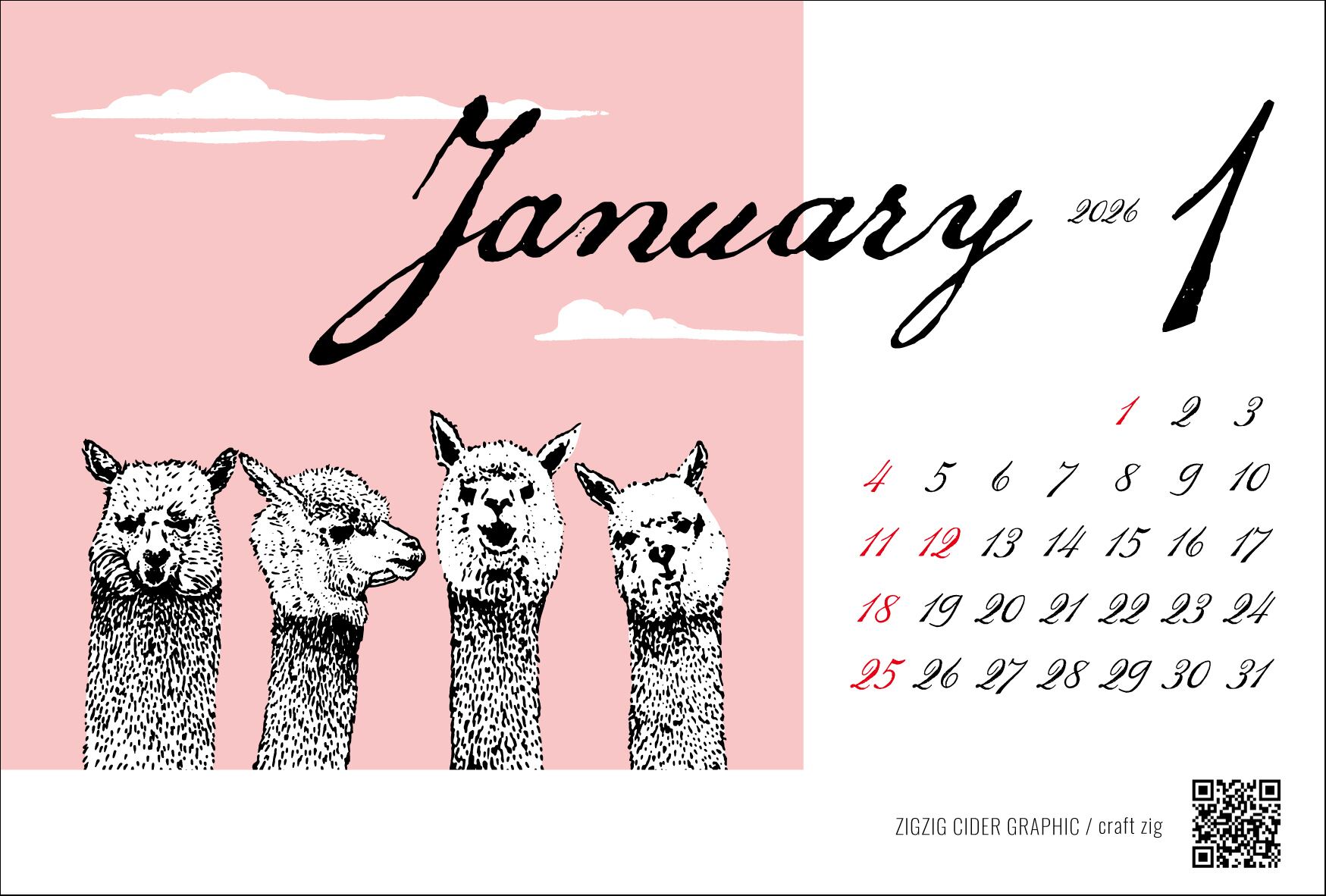 ZIGZIG CIDER GRAPHIC の2026年カレンダーです。
