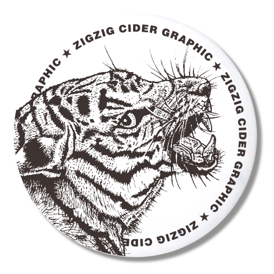 斜めのトラのイラストの缶バッジ44mmです!
