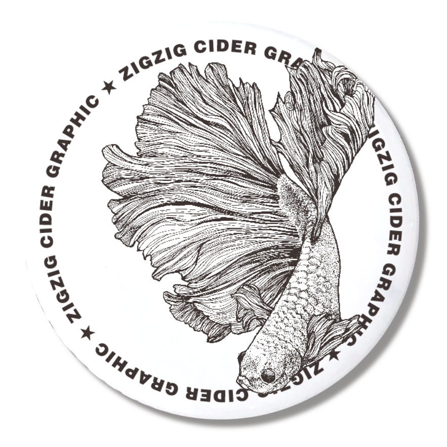 ベタのイラストの缶バッジ44mmです!