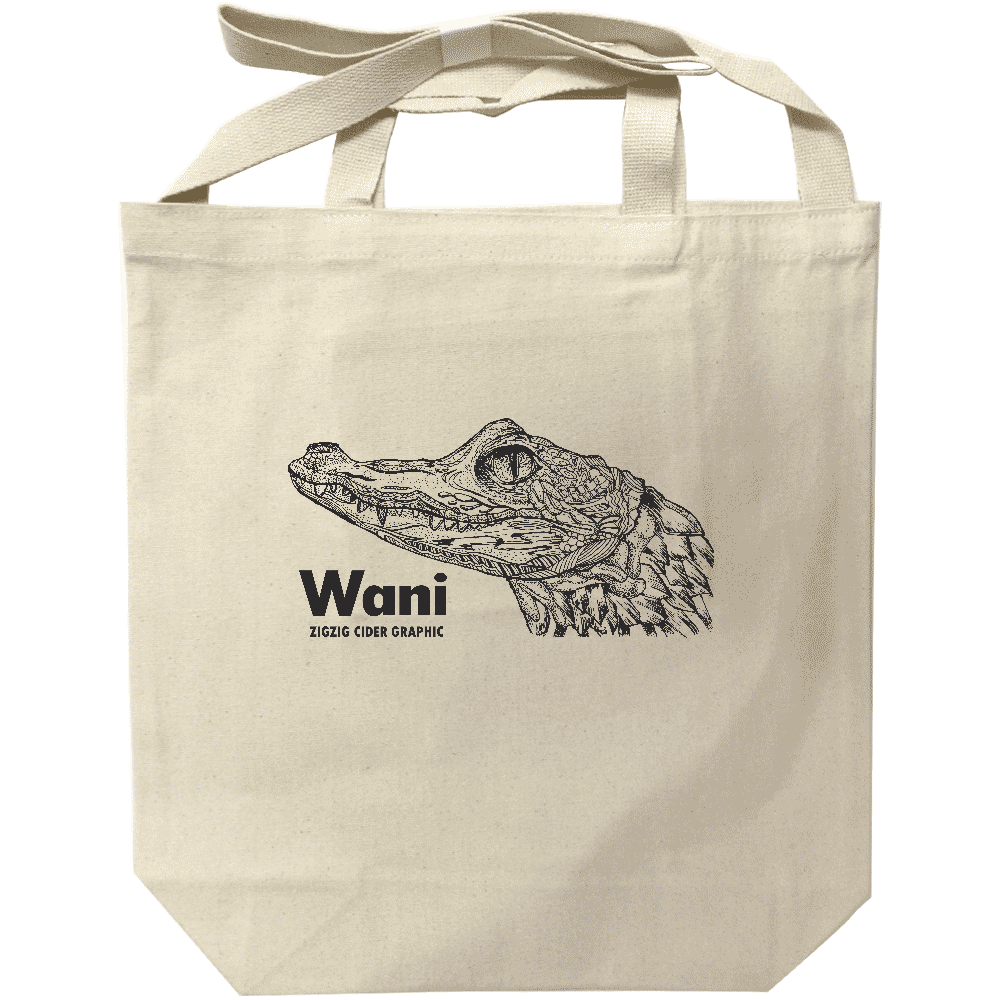 WANI オーガニックコットンキャンバスWスタイルバッグ(ナチュラル)37×40cm・マチ有 | ZIGZIG CIDER GRAPHIC | 動物・音楽Tシャツ・スマホケースなどのオリジナルショップ