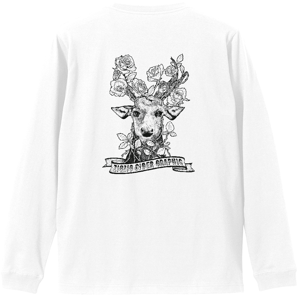 【受注生産】シカとバラ/バックプリント 長T(ホワイト)