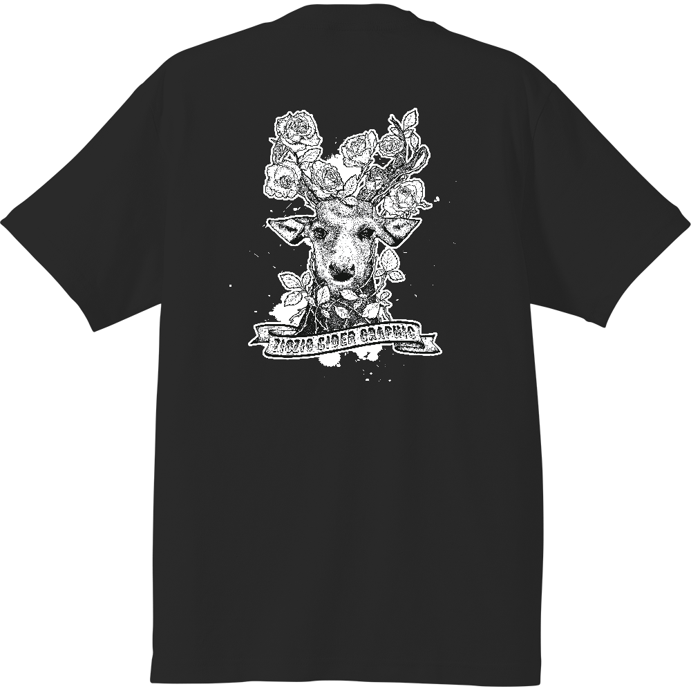 【受注生産】シカとバラ/バックプリント 半T(ブラック)