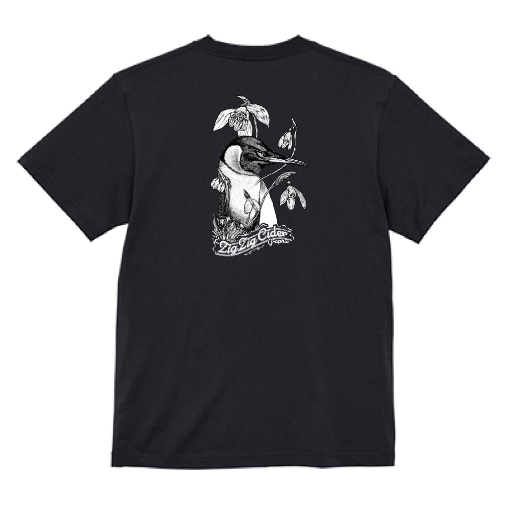 【受注生産】ペンギンとスノードロップ バックプリント 半T(ブラック)