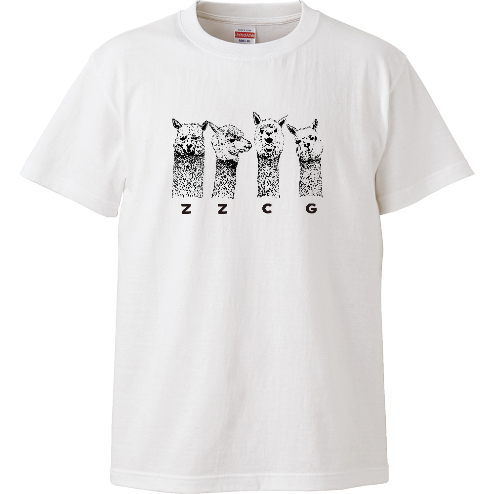 アルパカ4人組Tシャツ(ホワイト) | ZIGZIG CIDER GRAPHIC | 動物・音楽Tシャツ・スマホケースなどのオリジナルショップ