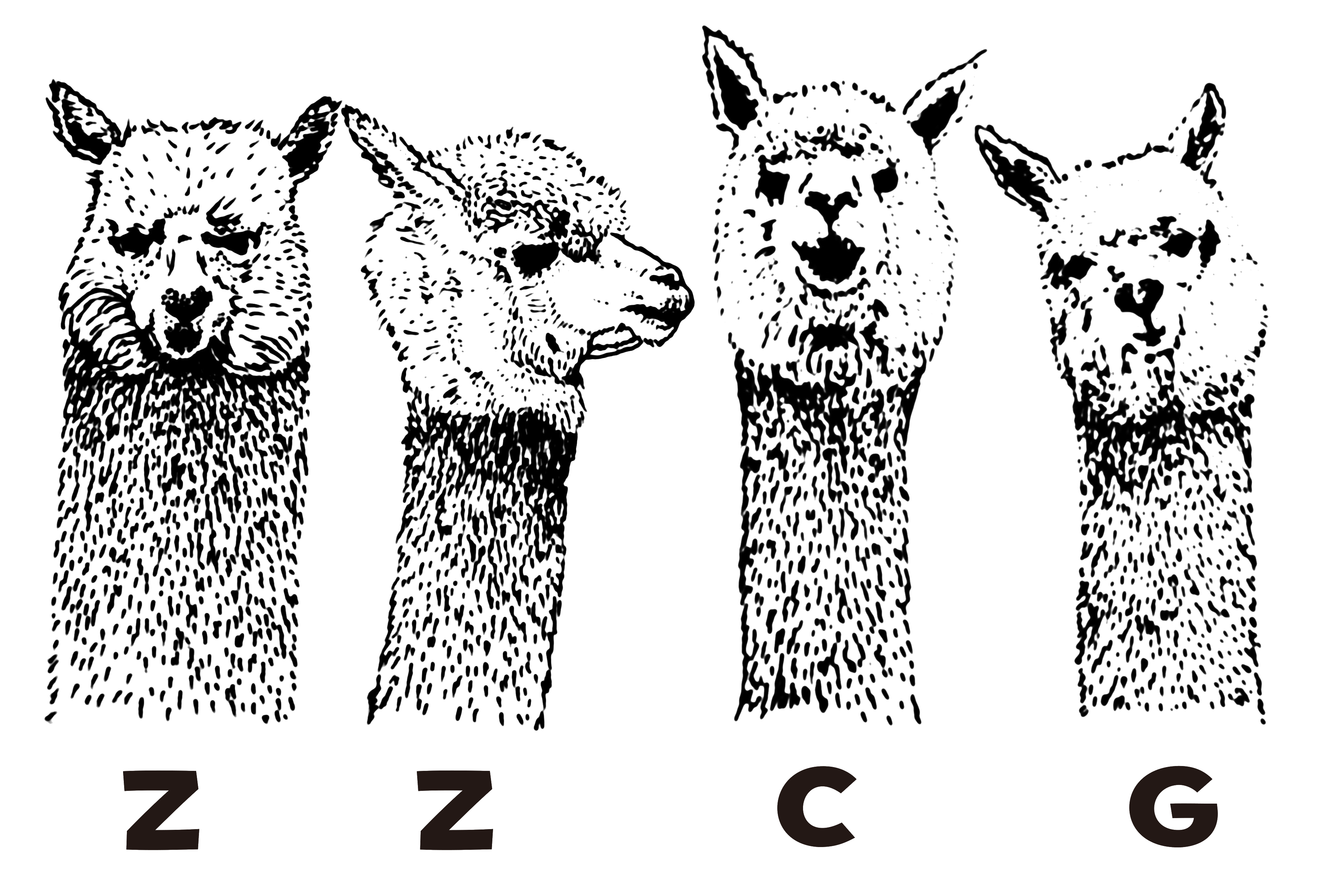 アルパカが4人揃ったイラストをプリントしたロンTです。
