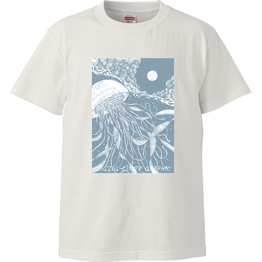 夏を感じさせる、涼しげなクラゲと月がモチーフとなったTシャツ。