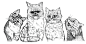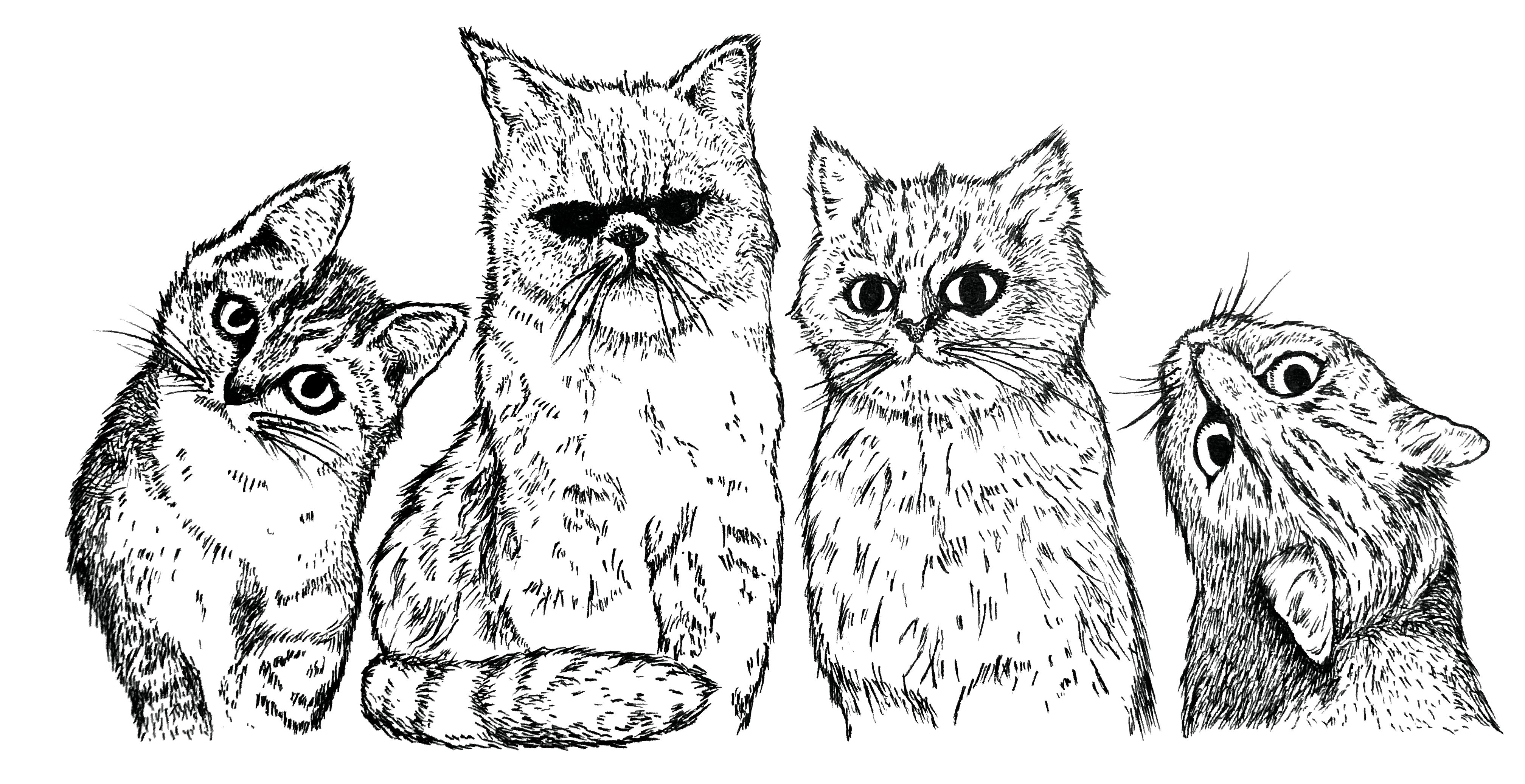 店主のお気に入りは、左から2番目のむっつりネコさんです。