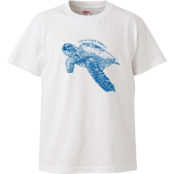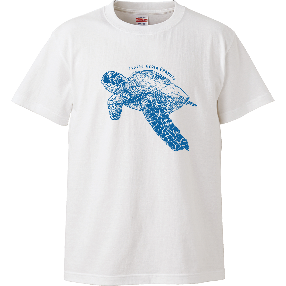このカメさんは夏に描いたイラストです。爽やかなブルーでプリントしてTシャツを作りました。